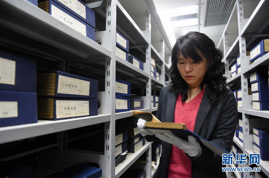 苏文珠在河北省图书馆特藏部珍本库翻阅古籍(11月21日摄)。