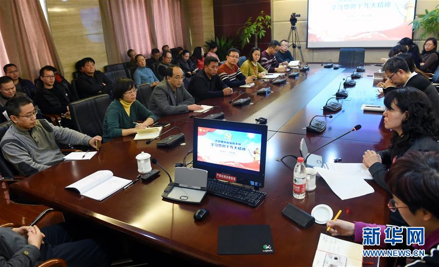 苏文珠在燕赵都市报编辑部宣讲十九大精神(11月21日摄)。