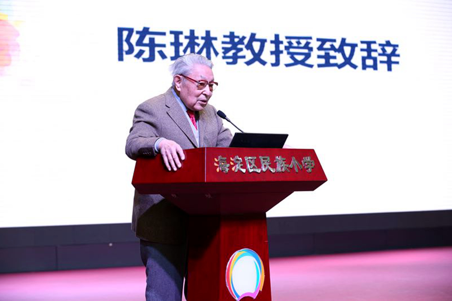 国家语委中文译写规范学术委员会主任委员、北京外国语大学教授陈琳在致辞中表示:目前国内外文化交际日趋频繁,具有符合国际规范的校园双语标志越来越重要。全国中小学校园双语标志活动落地民族小学,可以说是恰逢其时,这是学校学科教育融合的一次创新实践,希望通过此次活动,孩子们能够有所得、有所乐。