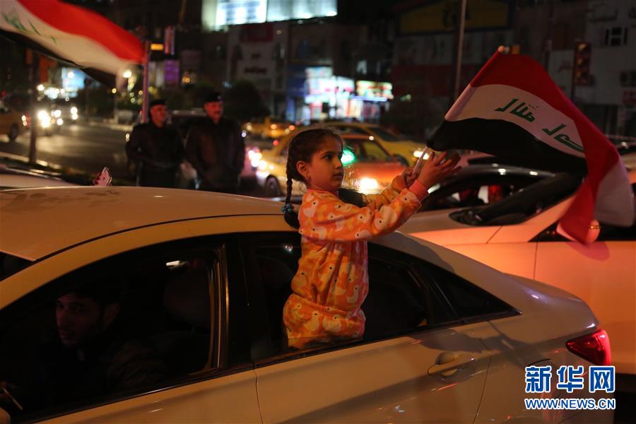 12月9日,一名伊拉克女孩在巴格达街头挥舞国旗庆祝胜利。 新华社发(哈利勒·达伍德摄)
