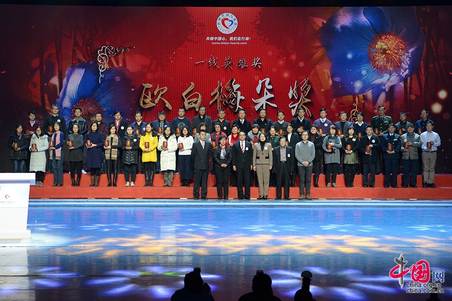 欧白梅朵即蓝莲花,生长在海拔5000米的高山峻岭,她昂首挺立,开放出艳丽夺目的花朵。被称为“离天最近的花朵”。今天,将象征着顽强生命力的欧白梅朵奖颁发给始终走在“共铸中国心”救助一线的44位医务志愿者。