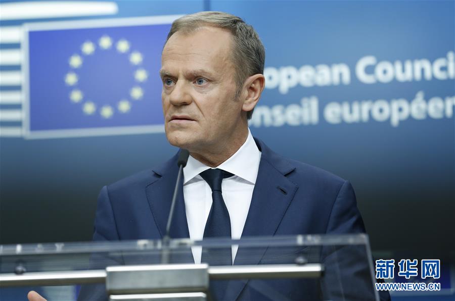 12月15日,在比利时首都布鲁塞尔,欧洲理事会主席图斯克出席新闻发布会。欧盟除英国以外的27国领导人15日在布鲁塞尔欧洲理事会总部举行会议,宣布英国“脱欧”第一阶段谈判已在“分手费”、爱尔兰边界以及欧盟在英公民权利等核心议题上取得“足够进展”,可以开启第二阶段谈判。新华社记者叶平凡 摄