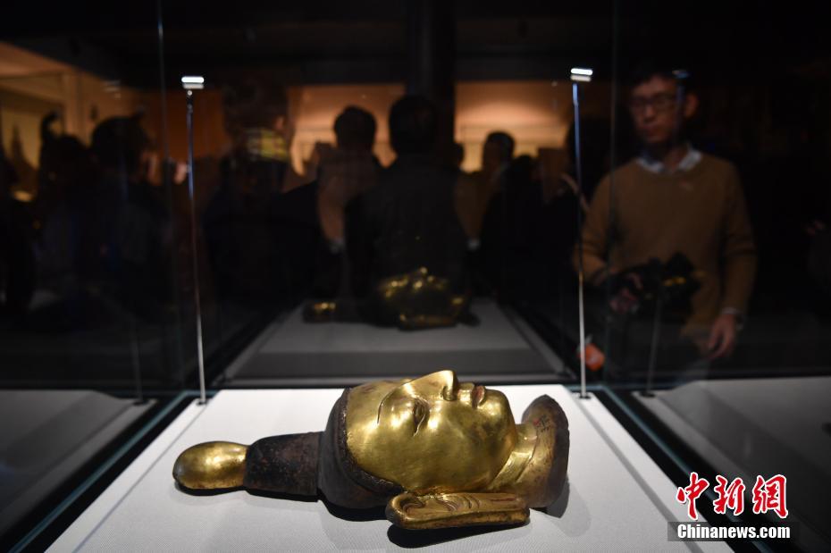 来自尼泊尔国家博物馆的佛面吸引参观者。张浪 摄