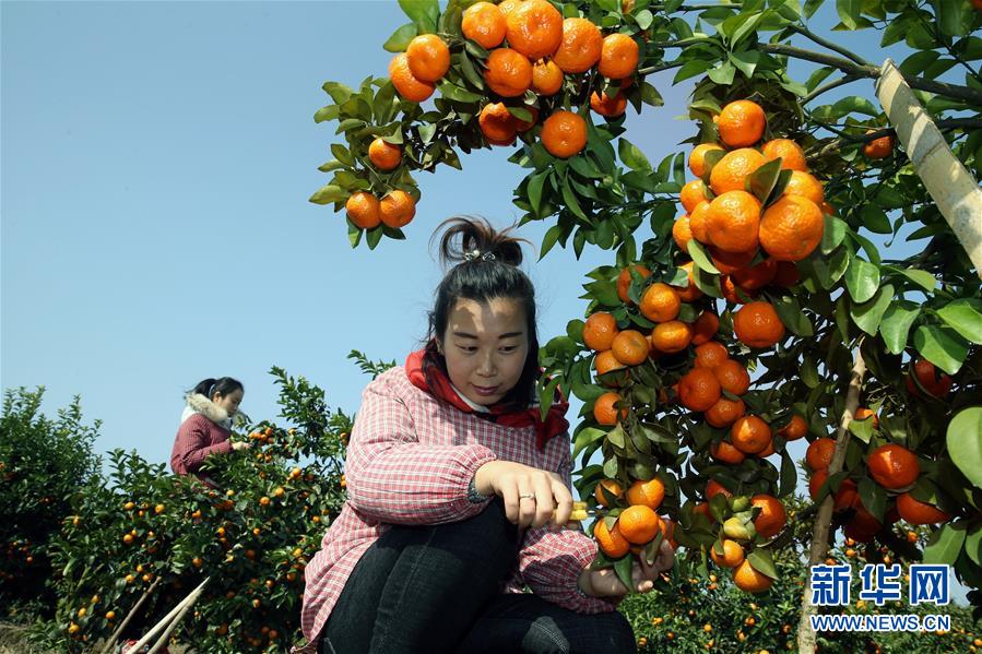12月17日,广西桂林市永福县罗锦镇高崇村农民在采摘沙糖桔。近年来,广西桂林市永福县依托“福寿、富硒、生态”三大品牌优势,突出推进永福沙糖桔特色农业产业规模化、专业化、标准化、产业化、集约化发展,沙糖桔种植面积近40万亩,2017年产果总量预计达50万吨。新华社记者黄孝邦 摄
