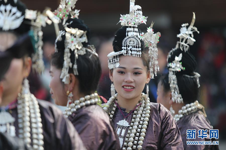 12月18日,身着盛装的侗族同胞参加巡游。当日,2017中国侗年暨第八届黎平·中国侗文化旅游节“非遗”文化巡游在贵州省黔东南苗族侗族自治州黎平县举行,当地侗族同胞欢聚一堂,喜迎侗年到来。新华社发(张晖摄)