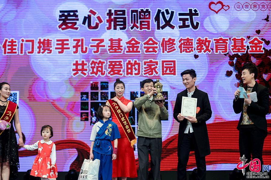 2017年12月30日,“善德行动 圆梦中华”大型公益晚会在京举行。Tu图为中国孔子基金会修德教育基金负责人滕树龙(右3)为少佳门艺术学校负责人刘少宾(右2)颁发爱心证书。(图文/达明)
