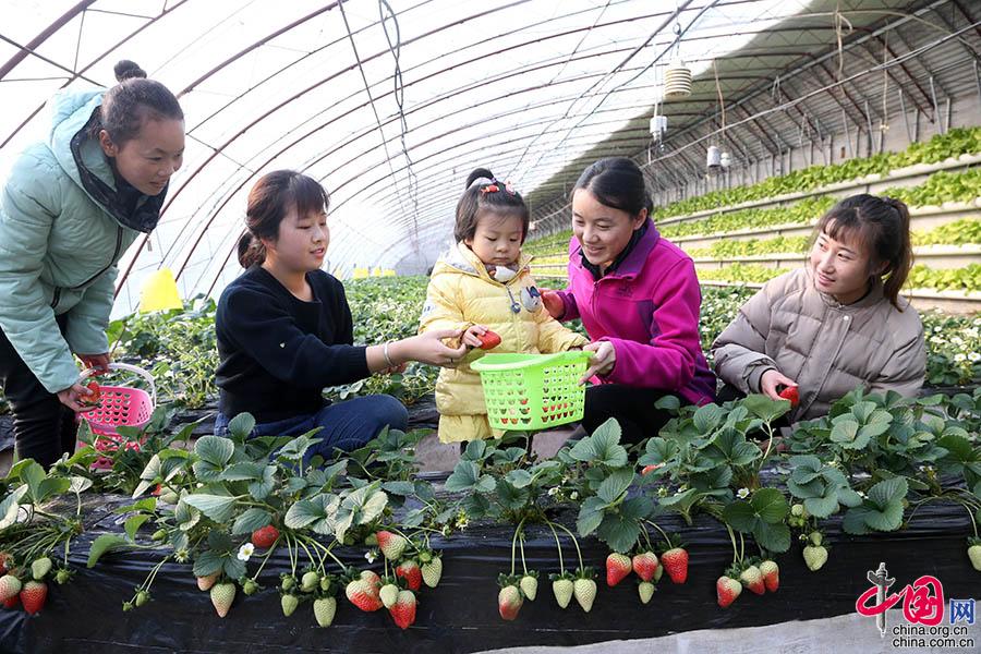 京郊授粉草莓鲜嫩欲滴 吸引游人尝鲜