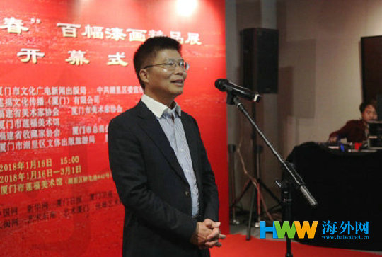 海外网1月17日电 1月16日,由厦门市文化广电新闻出版局、厦门市湖里区委宣传部、莲福文化传播(厦门)有限公司联合主办的“漆彩迎春——百幅漆画精品展”在厦门莲福美术馆隆重开幕。此次活动受到了社会各界广泛的关注,相关政府领导、艺术界和收藏拍卖界人士以及漆画爱好者等众多嘉宾出席了本次开幕式现场。