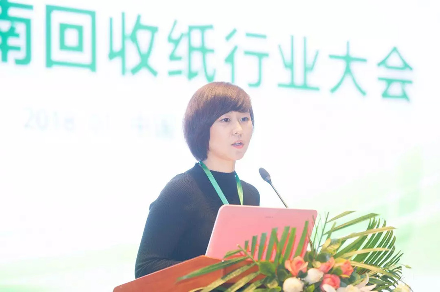 图为中国再生资源回收利用协会唐艳菊副秘书长致辞