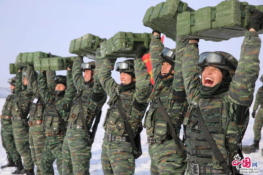 武警兵团总队执勤一支队特战队员开展托举弹药箱训练。 摄影 夏存喜 胡春谦 赵海鹏