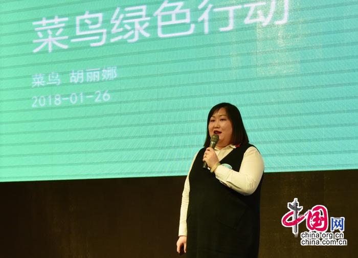 “菜鸟”绿色行动项目负责人胡丽娜发言。