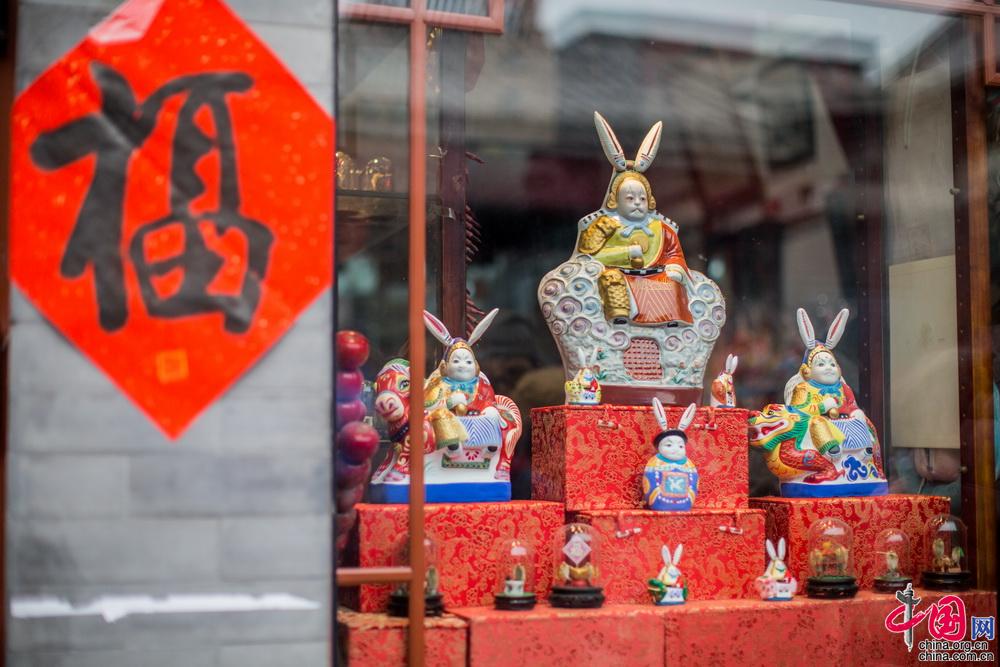 今年的厂甸庙会突出“文市庙会”的特色,庙会期间琉璃厂地区的各大古玩店开门迎客,吸引游人。中国网记者 郑亮摄