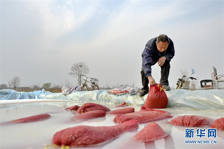 3月25日,河北省南和县东大村村民浸泡半夏种子,进行杀菌催芽。新华社记者 牟宇 摄