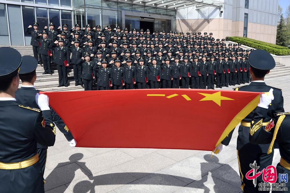 火箭军一级军士长面向军旗宣誓。 摄影 冯根锁