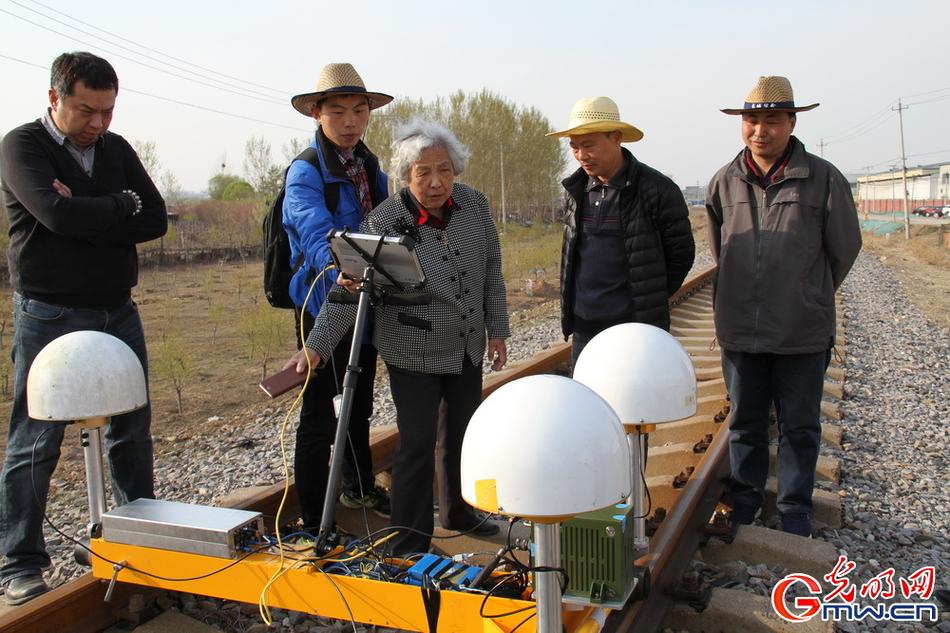 清华大学过静珺教授在测试现场介绍,基于北斗兼容GNSS卫星定位和惯导技术组合的监测及检测技术系统,并融合轨道工程沉降变形监测和轨道几何状态静态检测于一体的轨检小车。杨银东 摄