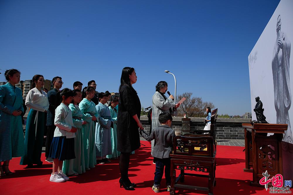 4月5日,一场别开生面的开学仪式——士学堂古礼拜师礼及士学子开学礼仪式在北京市左安门角楼图书馆举行。 中国网 杨佳 摄影