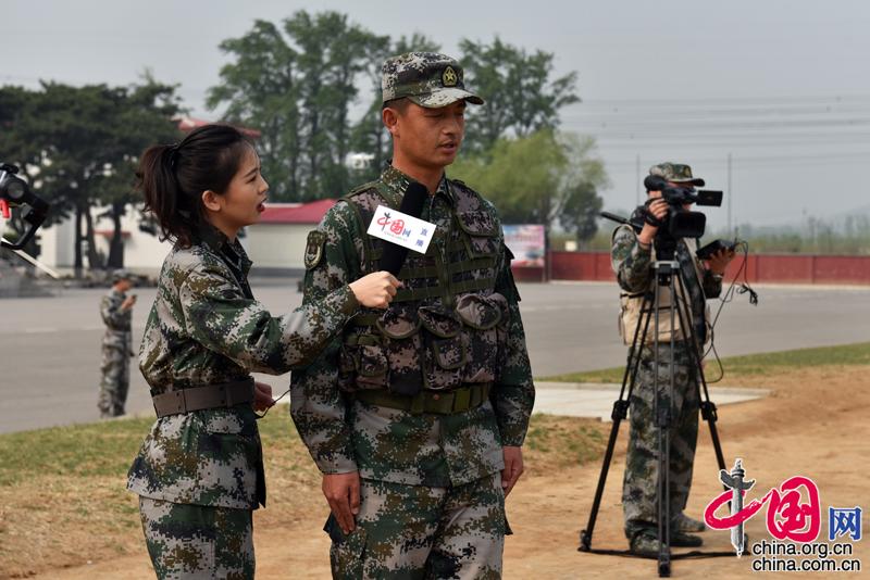 图为中国网主持人现场采访四连战士。肖力凡摄