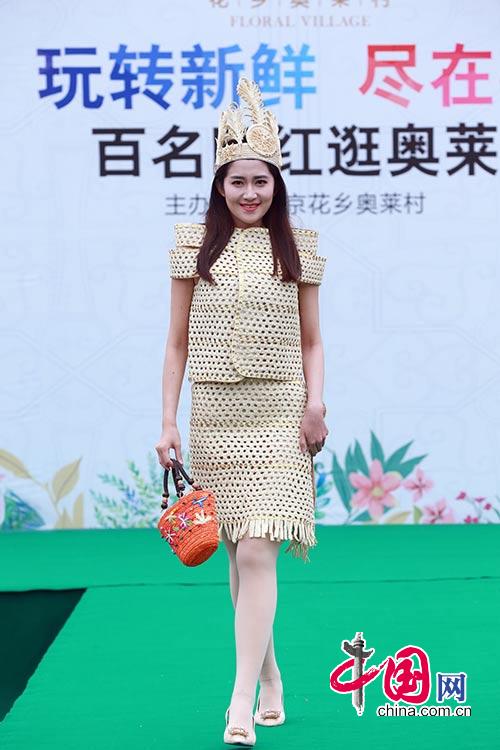 非遗人首先为大家带来一组草编潮物,靓丽的模特穿着草编时装亮相,引起在场人群阵阵惊呼。(图文/达明)