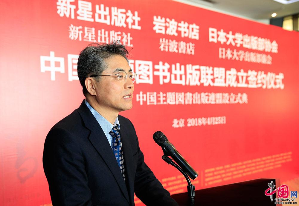 4月25日,中国外文局新星出版社与日本岩波书店、日本大学出版部协会在北京举行签约仪式,正式成立中国主题图书出版联盟。中国外文局局长张福海出席签约仪式并致辞。中国网 杨佳 摄影