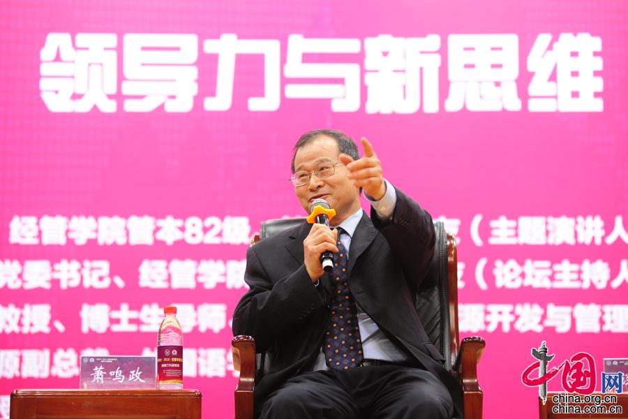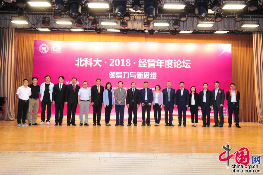 2018年5月6日,由北京科技大学东凌经济管理学院主办、北科大MBA校友会承办,以“领导力与新思维”为主题的“北科大·2018·经管年度论坛”在教职工礼堂举行。本次论坛邀请的嘉宾有:北京大学政府管理学院教授、博士生导师、北京大学人力资源开发与管理中心主任萧鸣政;方正集团总裁兼CEO、经管学院管理本科82级、研究生88级校友谢克海;爱立信(中国)人力资源副总裁、外国语学院英语研究生87级校友谈今;北京市平谷区刘家店镇党委书记、经管学院金融研究生05级校友刘晓东;经管学院工商管理系教授、博士生导师魏钧。与会嘉宾就组织领导力的提升、创新和发展等问题进行了深入探讨。