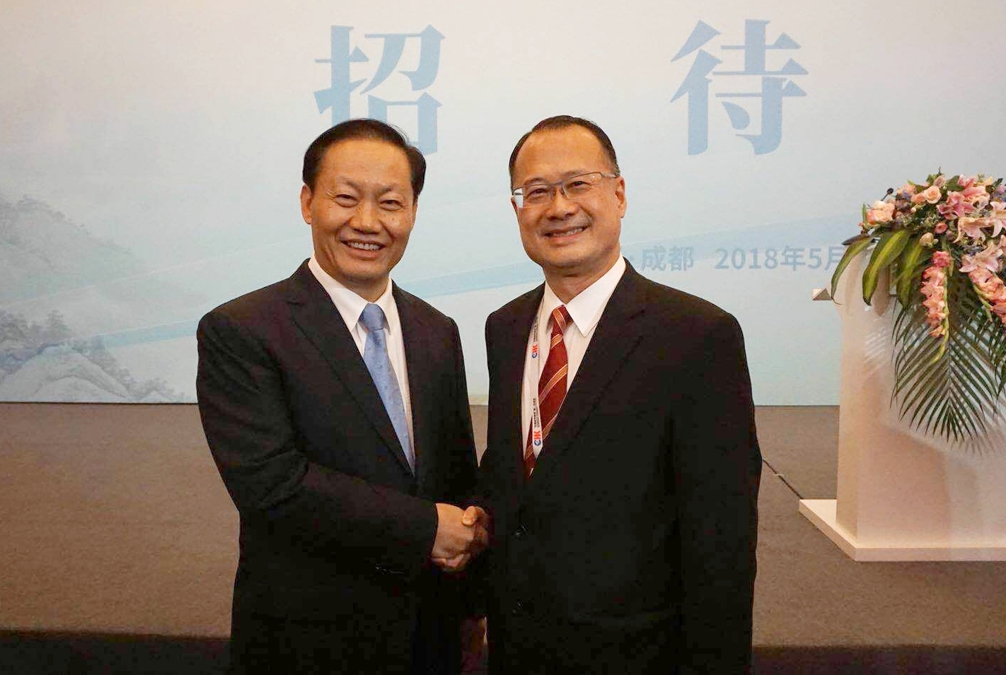 四川省委常委、成都市委书记范锐平 (左)会见蔡冠深