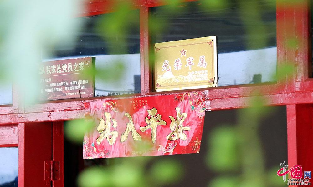 四川什邡——空降兵某旅侦察营班长周国宇的家门上挂着“我家是党员之家”和“光荣军属”的牌子。