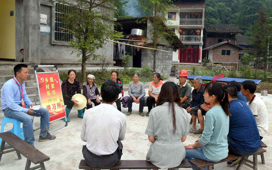 5月22日下午,天刚放晴,重庆市革命老区石柱土家族自治县中益乡坪坝村一农家院坝,村民们围坐一圈,倾听该村党支部书记、“乡村振兴脱贫攻坚讲习所”宣讲员刘成勇的政策宣传。为让党的十九大精神和富民政策深入人心,万众一心实施乡村振兴战略,该乡结合人口分散、农事繁忙的实际,统一整编宣讲资料,以村为单位组建讲习团,深入农家院坝流动宣讲,深受群众欢迎。 (文/图 谭华祥)