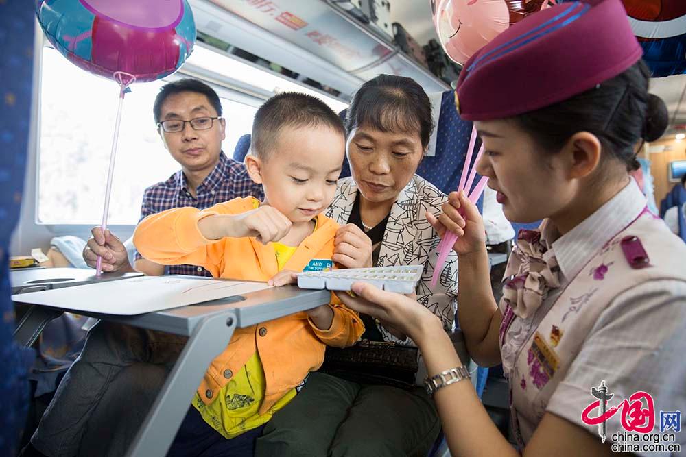 中国网讯六一儿童节到来之际,成都客运段在动车组列车上,为乘车的小朋友提供画纸、彩笔,邀请其进行绘画创作,并开办“动车小朋友画廊”集中展览绘画作品。