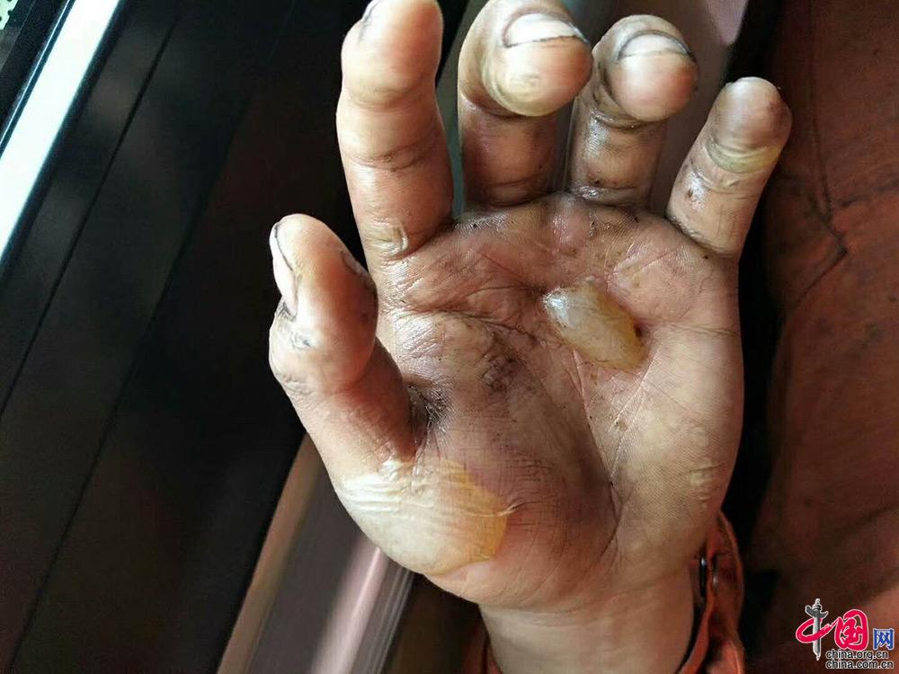 灭火作战中,一名战士的左手被有心人拍图发到了网络。一时间,过百万次转发,无数网友评论。