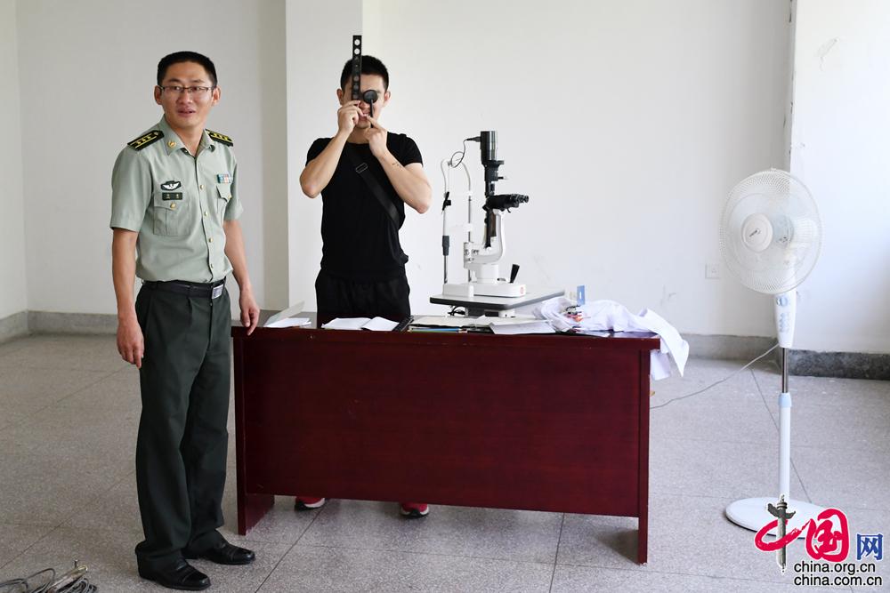 给应征大学生进行视力检查。 摄影 朱俊杰