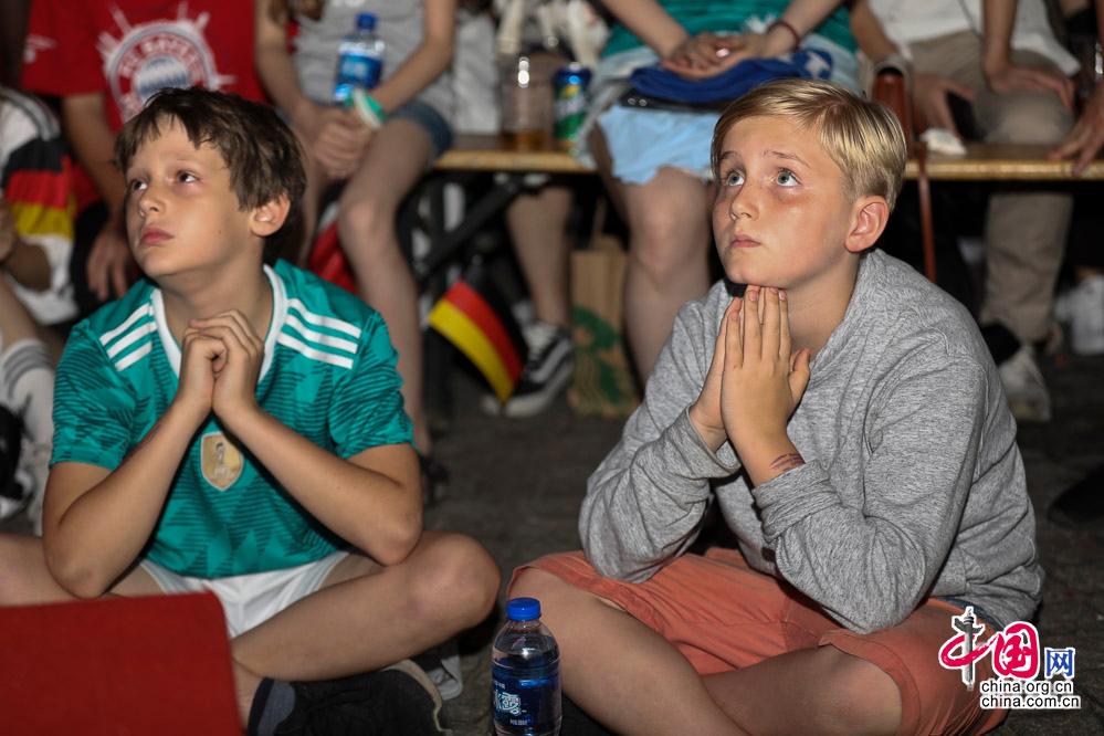 世界杯卫冕冠军德国队表现差劲,德国队球迷表情凝重。中国网记者 董宁 摄影