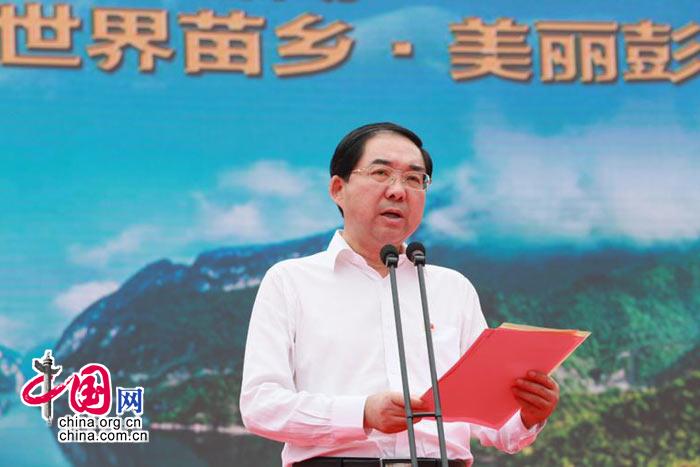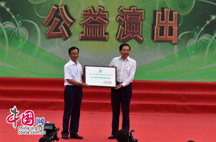国家林业和草原局副局长张永利给彭水县县长石强授牌,由中国绿化基金会绿色中国行活动组委会授予彭水县人民政府“2018绿色中国特别贡献奖”牌匾。