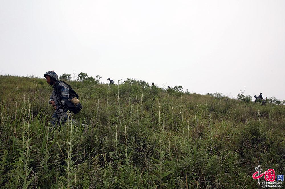 学员们在山间搜索前进。 中国网发