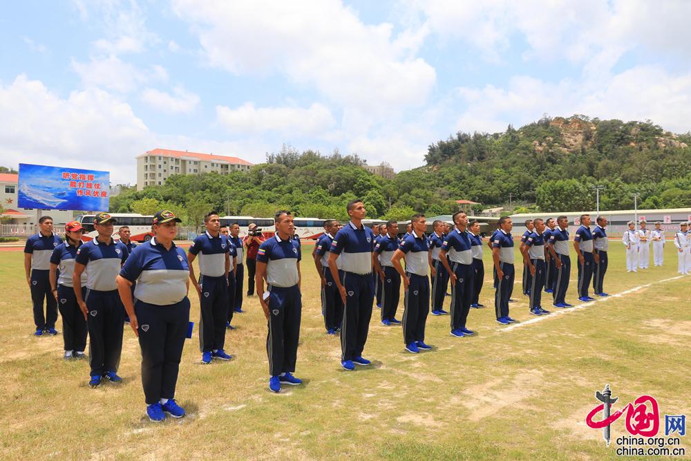 “国际军事比赛-2018”“海上登陆”陆战队分队比赛外军参赛队陆续抵达中国赛区。图为委内瑞拉陆战队员参加升旗仪式。 摄影 尚文斌