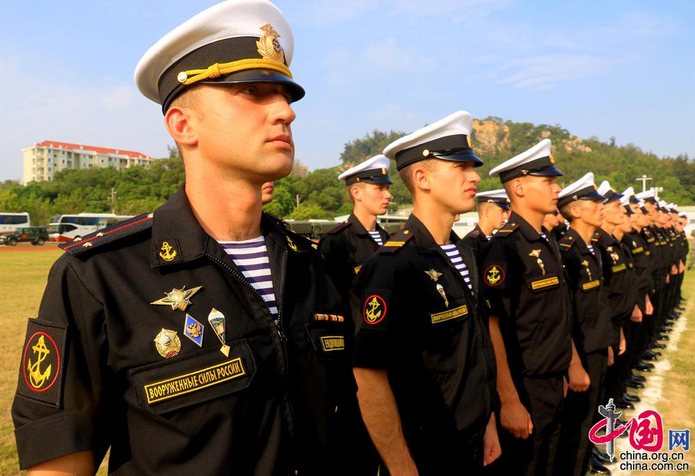 俄罗斯海军陆战队员参加升旗仪式。 摄影 尚文斌