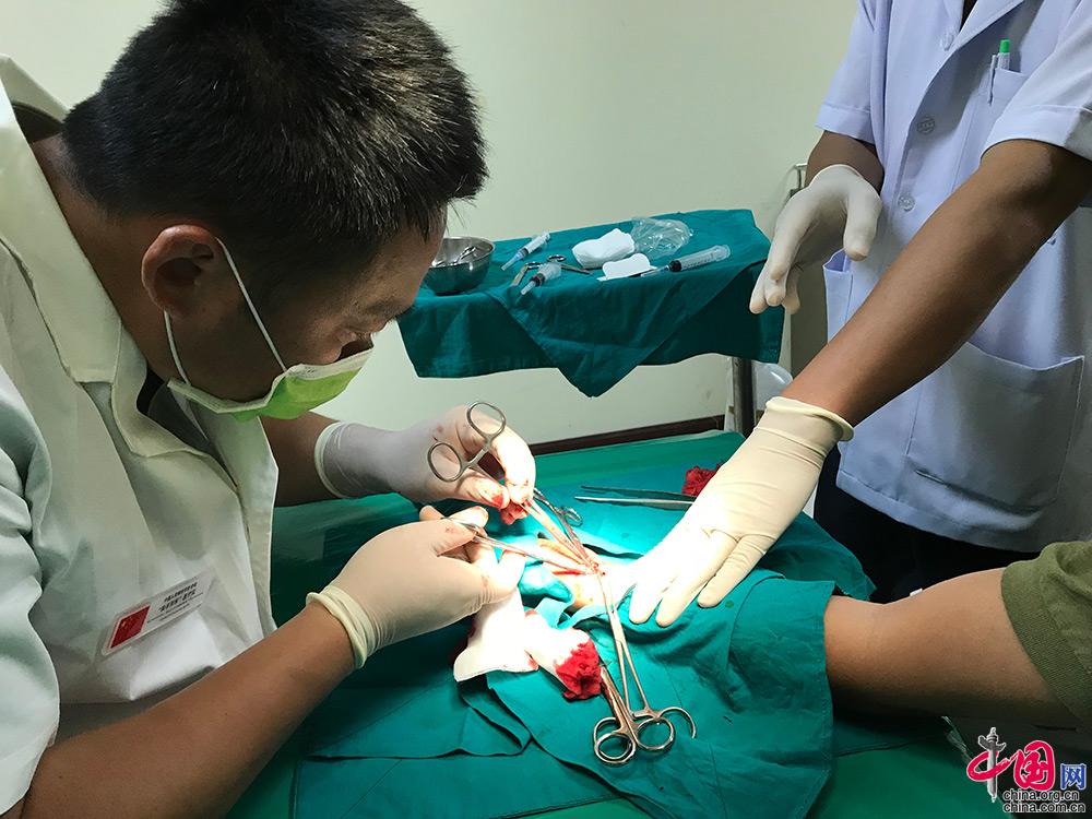 队外科军医何升东为患者温帆做腱鞘囊肿切除手术。李强 摄