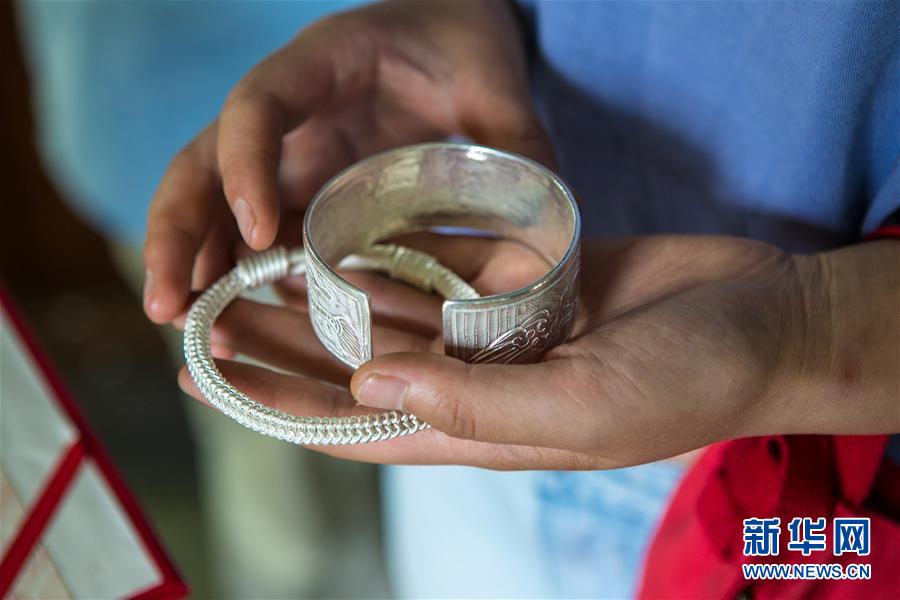 龙懂阳的弟弟龙太阳也是银饰工艺传人。和哥哥不同,弟弟主打的是银饰文化体验游,用自家传统苗寨开设民宿,游客在此居住的同时,还能学习体验银饰品制作。每年暑期一到,家长孩子络绎不绝。 新客源、新销路、新模式带动雷山县银饰业不断发展壮大,成为脱贫攻坚的重要产业。2017年,雷山县控拜、麻料、乌高三个村银饰品及相关产业销售额超过1.5亿元,吸引很多外出打工的年轻人回家创业。苗寨锻银声在绿水青山间响遍千户,也渐渐走出大山,声名远播。 新华社记者 李京 摄