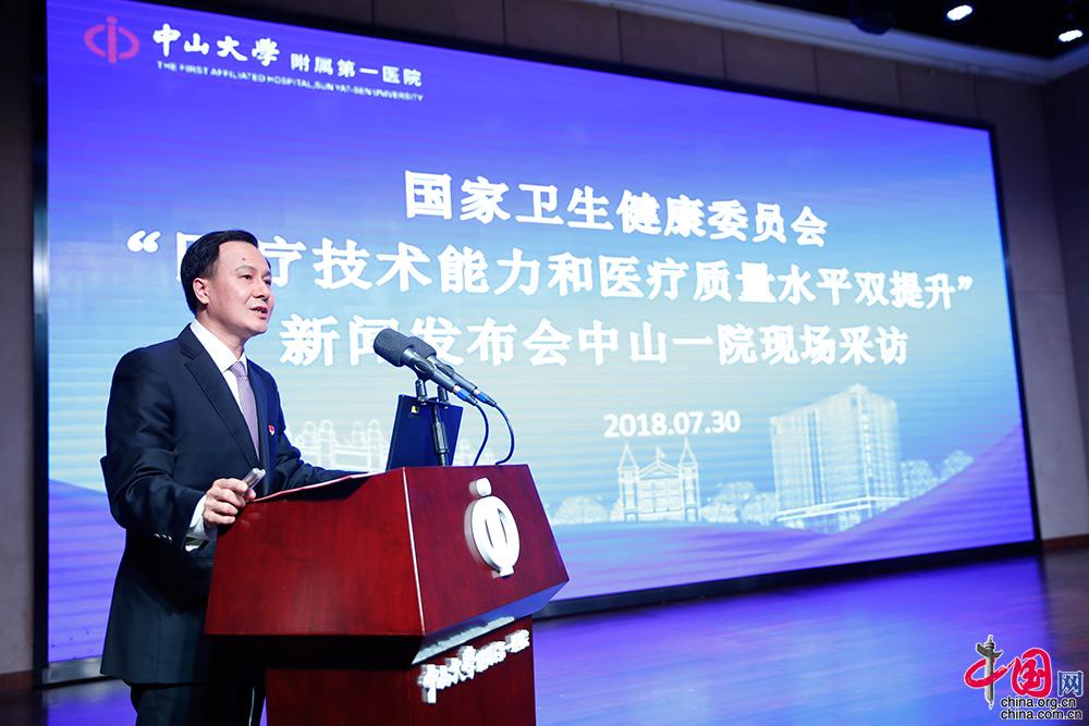 中山一院院长肖海鹏介绍该院在“医疗技术与质量双提升“方面的发展情况。中国网 杨佳 摄影