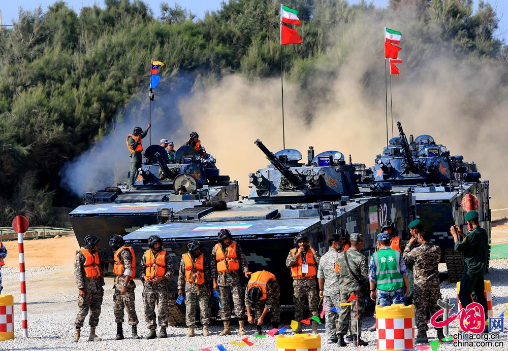 中国网8月9日讯(通讯员 尚文斌 吴浩宇)8月9日上午9时,“国际军事比赛-2018”海上登陆赛接力赛继续展开第二轮激烈角逐,来自伊朗、委内瑞拉2个国家共6个车组依次接力完成8公里地段驾驶、通过障碍及车载武器射击等比赛课目。结合第一轮比赛成绩,中国队以1小时08分56秒的成绩夺得接力赛团体第一名。