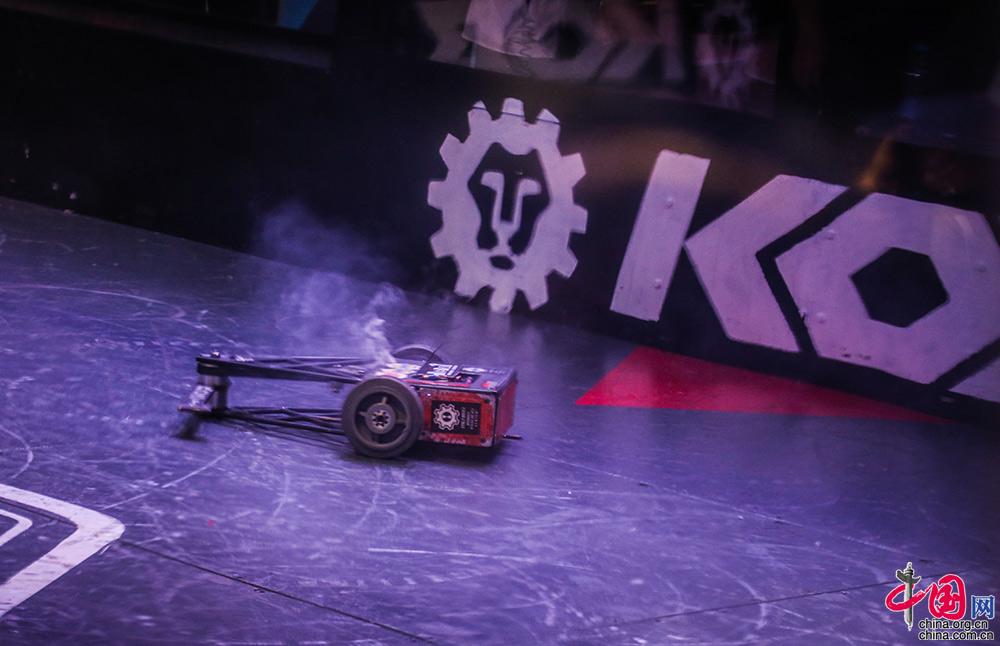 8月16日,“2018 年世界机器人大赛—KOB 全球机器人格斗类“赛事现场战况激烈。中国网记者 伦晓璇 摄