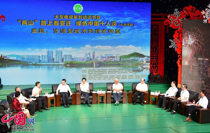 中国网讯(记者韩林) 8月18日下午,大型电视访谈节目“两山路上看变迁,绿色中国十人谈”在七台河广播电视台一楼演播大厅举行。由国家林业和草原局副局长张永利,中国科学院院士唐守正,国务院发展研究中心研究员周宏春,国家发改委综合运输研究所副所长王东明,清华大学哲学系主任、博士生导师卢风,中国生态文明研究与促进会常务理事、《党政领导干部生态文明建设读本》主编黎祖交教授,中国供销(海南)实业发展有限公司董事长杜玉宽,黑龙江省林业厅副厅长张学武等8位领导和专家组成的嘉宾团队,与本期节目主讲人七台河市市长贾君及担任现场主持的中央广播电视总台央广主持人林溪,就“资源型城市的绿色转型” ,以更高的视角、更宽的视野,献计资源型城市的绿色转型,畅谈七台河市乃至东北城市的生态建设和转型发展。