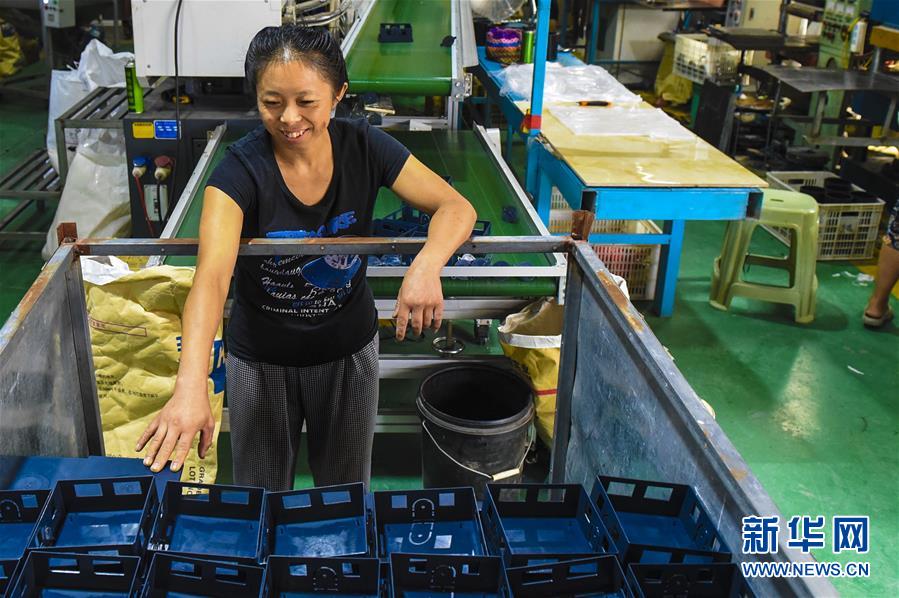 8月28日,在河北省深州市大屯镇陈家口村,村民在企业车间工作。 新华社记者 李晓果摄