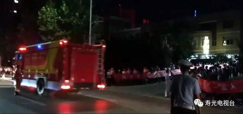 救灾队在凌晨悄悄撤离,得知消息的寿光人民赶来送行。