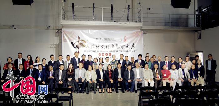 吉尔吉斯斯坦国家副总理奥穆尔别克娃与中吉艺术大展全体艺术家和企业家代表合影。