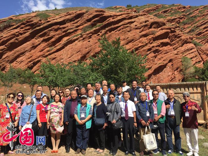 丝路文化之旅中国艺术家代表团在丝绸之路遗址合影。