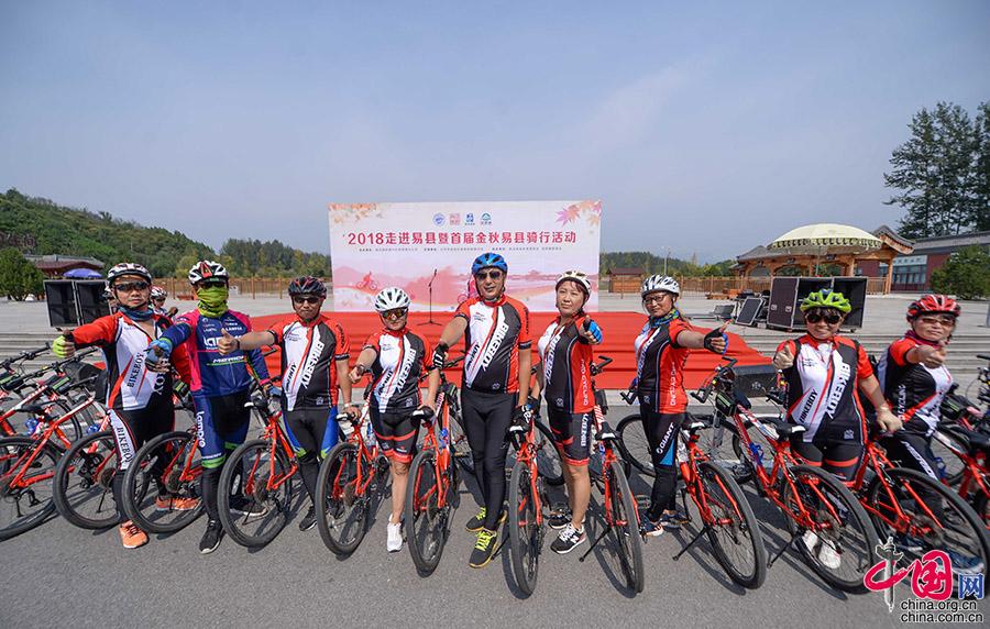 9月12日上午9:30, “2018海淀区旅游委走进易县暨首届金秋易县骑行活动”在河北省易县崇陵正式开始。图为骑行活动现场。