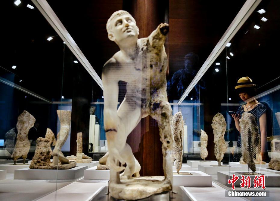 9月14日,北京故宫博物院神武门展厅举办“爱琴遗珍——希腊安提凯希拉岛水下考古文物展”。本次展览展出文物约350件,来自希腊国家考古博物馆、雅典贝纳基博物馆和希腊水下文物监委会。“爱琴遗珍——希腊安提凯希拉岛水下考古文物展”的展品打捞于一艘公元前一世纪的沉船,这艘船从希腊化的小亚细亚沿岸港口出发,驶向意大利的罗马共和国,不幸半途沉没于安提凯希拉岛附近水域。中新社记者 杜洋 摄
