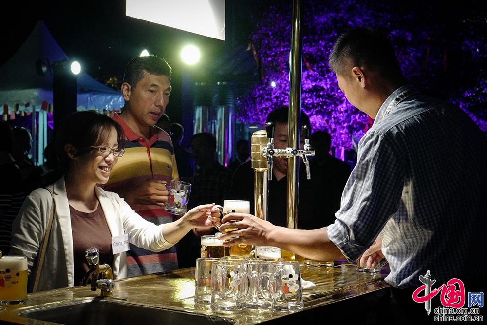 受邀嘉宾品尝德式啤酒。 中国网记者 张若梦 摄
