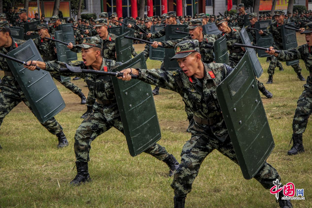 正在演示“警棍盾牌击打动作”的老兵。蔡霖伟摄