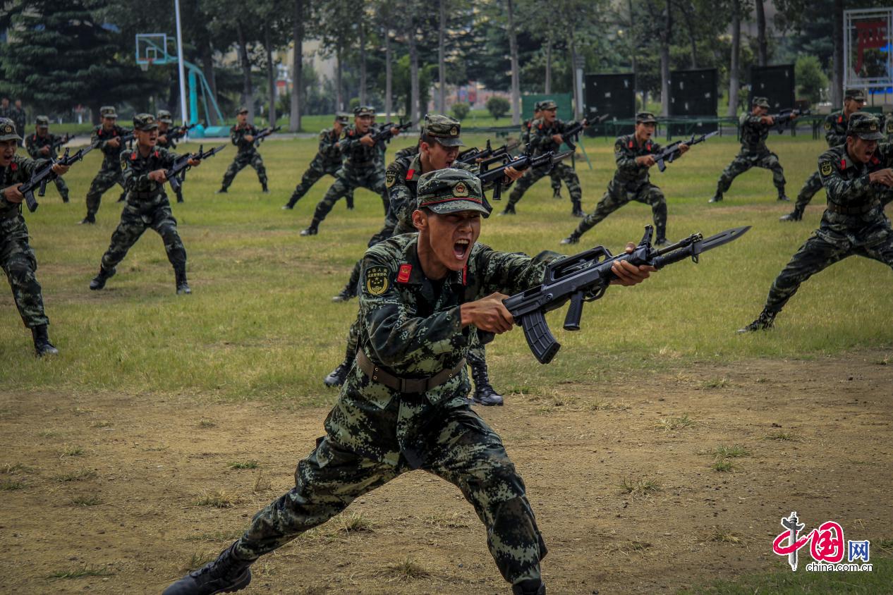 正在演示“刺杀操”的老兵。蔡霖伟摄